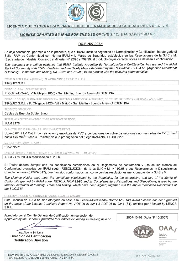 Certificado Subterráneos